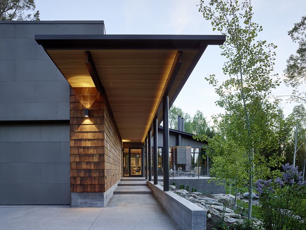 If architecture isn’t your thing, consider Fish Creek Compound if you’re looking for a secluded Jackson Hole getaway for up to 11 guests where you feel a part of the surrounding landscape. Both the guest and main houses have large expanses of glass, in bedroom suites and public areas. The architect says, “You almost feel like you’re camping out, that you’re out in the woods.” Except you’re not. If a black bear happens to wander by — as the architect once saw — you can enjoy watching it safely through floor-to-ceiling windows.